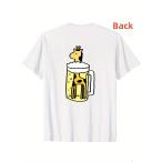 面白いキリンとビールジョッキ バックプリントTシャツ ユニセックス ホワイト 半袖 ラウンドネック カジュアル パーティー 洗濯機可 S-3XL