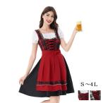 ハロウィン オクトーバーフェスト 衣装 レディース ドイツ風 ビール祭り ワンピース コスチューム ロング丈 赤 チェック柄 ヨーロッパ風 民族衣装風 S〜4L