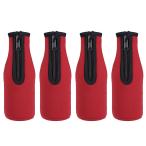 uxcell ビールボトルスリーブ クーラー断熱材 折りたたみ式 ネオプレンカバー ジッパー付き 330ml〜350ml用 レッド 4個入り