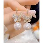 ピアス パールピアス韓国風揺れるピアスバタフライ レディース