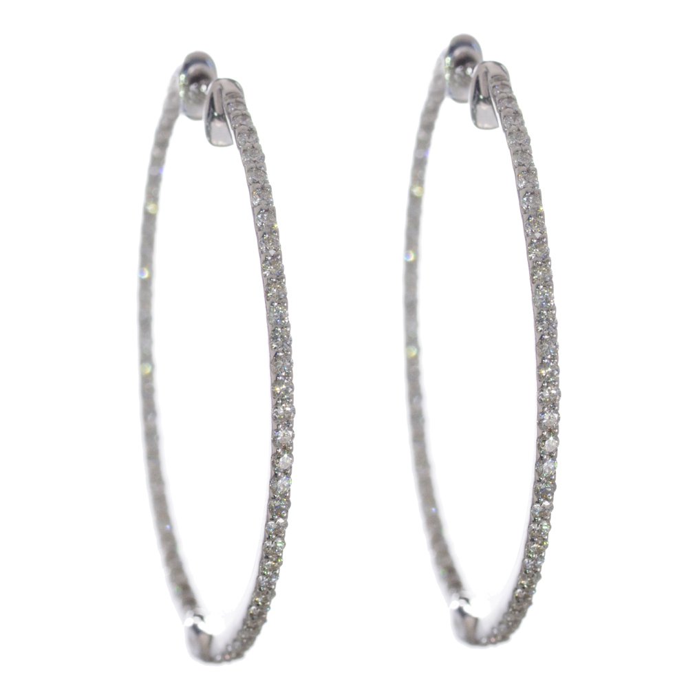【スーパーSALE★13%OFFクーポン】ダイヤモンド フープピアス K18 18KWG レディース 18金 ホワイトゴールド 中折れ 50mm 1カラット 日本製 刻印入り 鑑別書付き【人気アイテム】