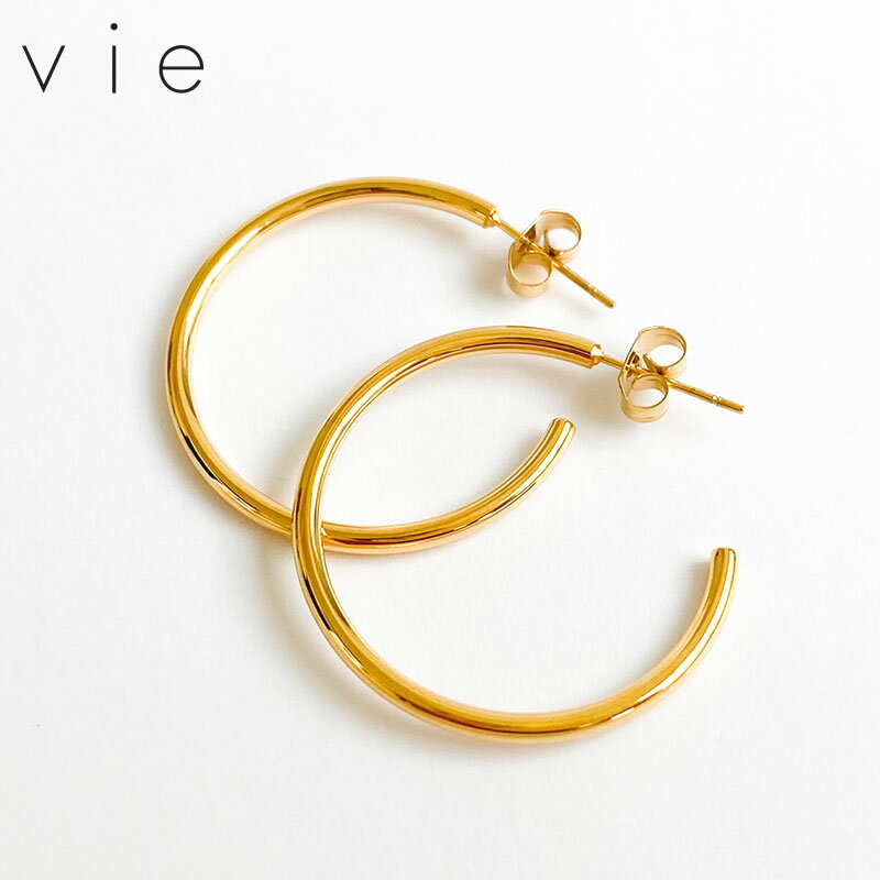 クーポンで10%OFF!28日23時59分まで vie ヴィー G型 フープ ピアス サージカルステンレス ゴールド 両耳用 2点 金属アレルギー対応 レディース ブランド 正規取り扱い