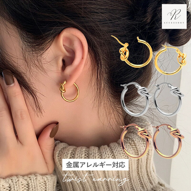 【4時間限定!全品20%OFFクーポン!】ピアス フープピアス 金属アレルギー ニッケルフリー 18kコーティング レディース キャッチレス 開閉式 ひねり ねじり 大人 上品 エレガント きれいめ シンプル フェミニン ゴールド シルバー ピンクゴールド 送料無料