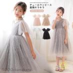 子供 ドレス ピアノ 発表会 キッズ フォーマル チュールワンピース ふわふわ ふんわり感 子供ドレス 半袖 星柄 女の子 ロングワンピース キラキラ ジュニア 膝丈