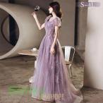 ブライズメイド ドレス 大人 ピアノ 発表会 ロングドレス オフショルダー 結婚式 母親 ピアノ発表会 ピンク×パープル 袖付き ワンピース 半袖 演奏会ドレス