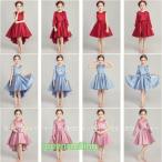 ピアノ発表会 ドレス ロング丈 子供ドレス ワンピース お姫様 着やせ パープル ライトブルー ピンク グレー レッド 上品