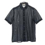 Pierre Cardin ピエールカルダン 総柄 半袖 シースルー シャツ 85 ブラック ブラウス レディース 古着 中古