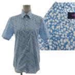 ピエールカルダン Pierre Cardin リバティLIBERTYプリント スナップダウンシャツ 半袖 コットン ブルー系 ホワイト S