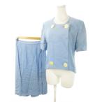 ピエールカルダン スーツ セットアップ 2点セット ノーカラージャケット ダブル タイトスカート ロング リネン混 麻 11 青