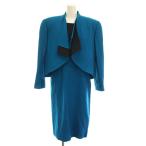 ピエールカルダン ワンピーススーツ セットアップ 上下 ノーカラージャケット 背抜き ミモレ丈ワンピース 半袖 ウール フォーマル 9 黒