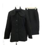 ピエールカルダン Pierre Cardin スーツ セットアップ ジャケット スカート ウール 9 黒 ブラック 長袖 ボウタイ風襟 ループ生地