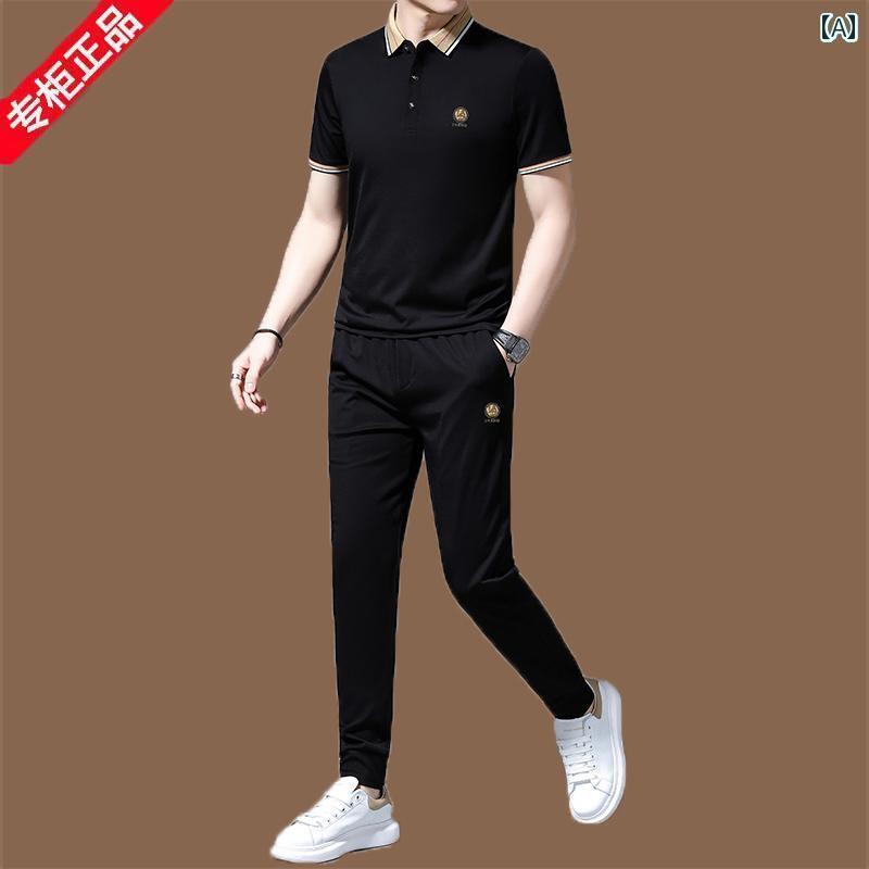 キャミソール ワンピース かわいい ピエールカルダン 桑 絹 スポーツ カジュアル スーツ メンズ 夏 半袖 Tシャツ 高級 冷感 中年 ズボン 2点 セット