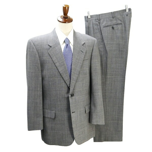 ピエールカルダン 2つボタン シングルスーツ A6 M グレー 灰色 グレンチェック ツータック 春秋 合物 1001-1171-07 6NC011 【送料無料】【中古】【メンズビジネス】202603