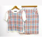 ピエールカルダン セットアップ 上下セット リネン混 日本製 白 レディース L/40サイズ ホワイト×オレンジ系 Pierre Cardin