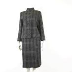 ピエールカルダン Pierre Cardin 上下セットアップ スカートスーツ グレンチェック ツイード ウール スタンドカラー 長袖 M グレー 黒