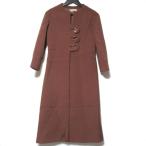 美品 60-70s pierre cardin ピエールカルダン ヴィンテージ スカラップデザイン ノーカラー ロングコート ブラウン レディース 古着 中古