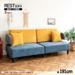 3人掛け ソファ 3台セット イエロー×ダークグレー×インディゴ 全4タイプ 幅191cm ローソファー 三人掛け クッション付 RESTレスト