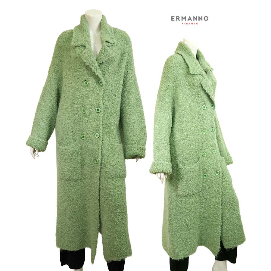 【定価¥125,000の50%OFF】ERMANNO FIRENZE【エルマンノ フィレンツェ】秋冬【半額セール】【正規取扱い】【送料無料】【レディース】モヘアウール混カールヤーンロングコート/ピスタチオグリーン【サイズ48】【イタリア製】