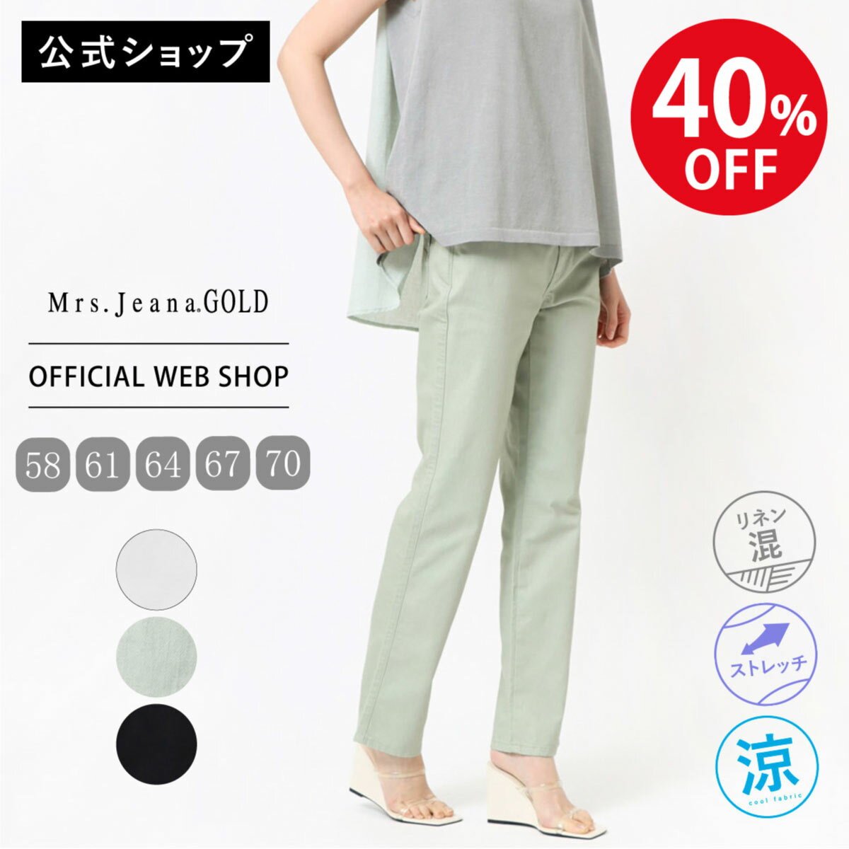 【期間限定価格】【公式】【40%OFF】【涼】 Mrs.Jeana GOLD ミセスジーナゴールド サマーストレート レディース ズボン ボトムス 白 黒 ピスタチオ 綿麻 コットン リネン 涼しい [SALE] GM3378 母の日 ギフト