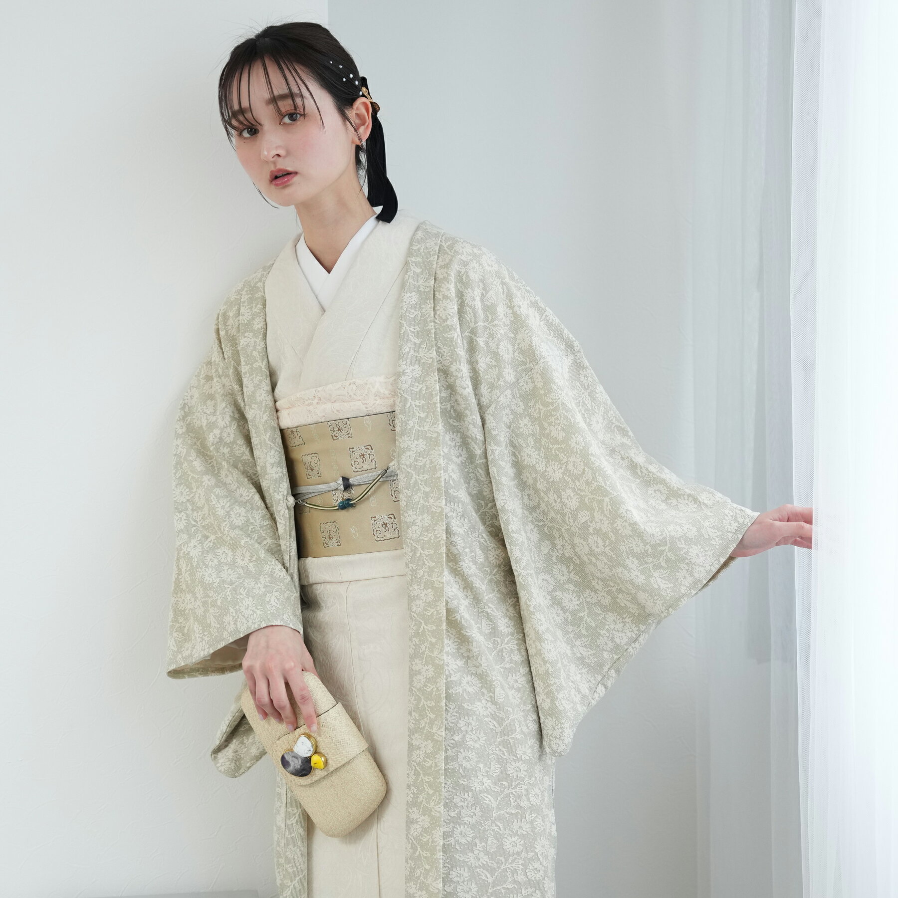 【20%OFF】【ニコアンティーク 薄羽織 モザイクフラワー ピスタチオ】長羽織 羽織 着物 レディース 花柄 日本製 国産生地 塵除け フリーサイズ 和装コート アウター カジュアル お洒落 上品 エレガント 可愛い 春夏秋 グリーン 白緑 緑