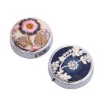 日本製 インド刺繍 リボンハンドメイド 手作り ピルケース お薬入 小物入 ステーショナリーケース フラワー花柄 ラウンド型 お洒落 上品 可愛い 女性 レディース