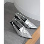 パンプス カーブヒールコインローファースリングバックパンプス