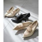 パンプス メタリックラインポインテッドトゥ ローファーパンプス