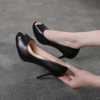 パンプス オープントゥ パンプス 痛くない 歩きやすい ハイヒール ピンヒール オフィス クッション おしゃれ パンプス 8cm 疲れない 脱げない 黒 ヒール