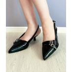 パンプス ポインテッドトゥ バンドストラップ ミュール パンプス「日本製」