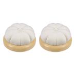 uxcell 木製ベースのピンクッション2個セット 日本風かわいい針受け 縫製 キルティング 刺繍 DIYクラフト用 クリーム色