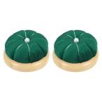 uxcell 木製ベースのピンクッション2個セット 日本風かわいい針受け 縫製 キルティング 刺繍 DIYクラフト用 ダーク緑