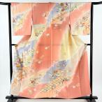 訪問着 身丈155cm 裄丈65cm M 袷 千總 落款あり 草花 菱 刺繍 金糸 サーモンピンク 正絹 逸品 中古