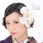 (Prices down5)成人式 髪飾り 振袖 2点セット「ベージュホワイトのお花」お花髪飾り 成人式の袴にも コーム髪飾り フラワーコーム(No.356ss2512wkk35