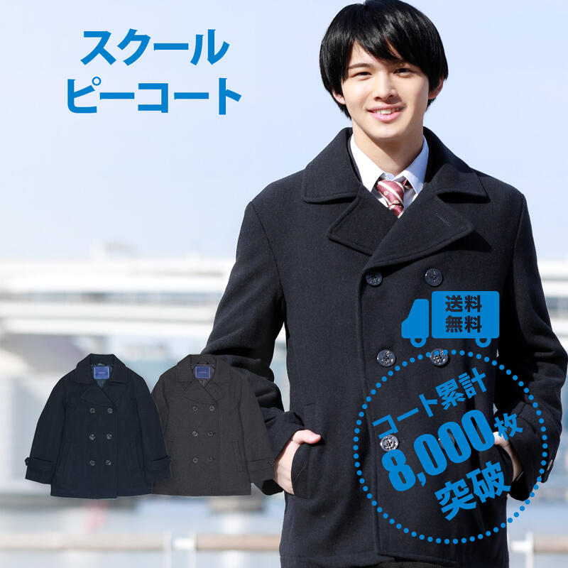 スクールコート 男子 ピーコート 学生 軽い スクールコート 通学 冬 無地 CONOMi(全2色) Pコート 高校生 通学 中学生 通学 ウール 紺 ネイビー グレー 制服 コート 男子 学生服 スクールコート ピーコート 軽い 通学 コート