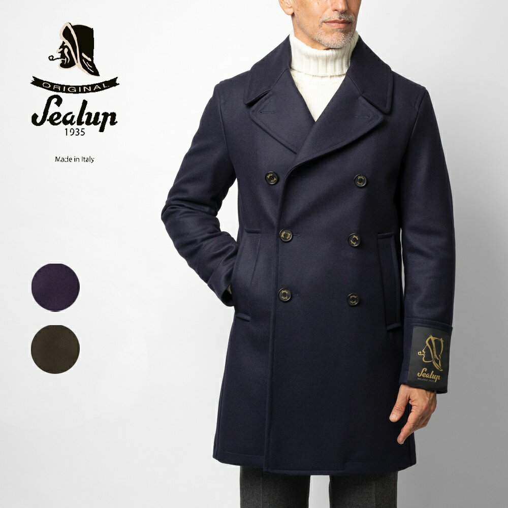 シーラップ SEALUP ピーコート ロング丈 GENOVA ジェノバ 50092 pコート メンズコート メンズピーコート ビジネスコート ウールコート ピーコートメンズ 中綿入り コート アウター メンズアウター 男性 シンプル ロング ウール イタリア ネイビー ブラック カーキ