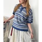 tシャツ PEANUTSコラボ マルチボーダーポロ衿ニットトップス レディース