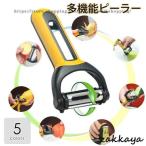 ピーラー 皮むき 野菜 3way キッチンツール 便利グッズ 多機能ピーラー 千切り 栓抜き 保護カバー付き イエロー グリーン オレンジ グレー 都会的
