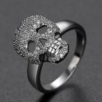 パンクカラフルなCスケルトンデビルリングブラックホワイトブリングジルコンスカルフェイスアイスリングメンズファシオバイカーヒップホップジュエリー