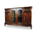 キャビネット マホガニー材 猫足 幅130 ガラス戸 アンティーク調 輸入家具 コンソール 天然木 木製 完成品【QOG-200】SOK 開梱設置送料無料
