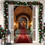 【並行輸入品】Tomhong 中世城階段ドアカバーバナー 71x35インチ ゴシックアーチ レッドカーペット トーチライト ダンジョン ファンタ