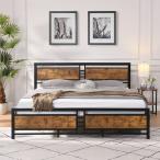 【並行輸入品】MWrouqfur モダンキングサイズメタルプラットフォームベッドフレーム 木製ヘッドボード付き 頑丈なマットレスファンデーション