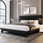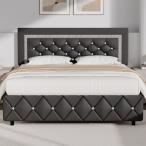 【並行輸入品】SIBEDS(シベス) クイーンベッドフレーム 調節可能なヘッドボード付き 布張りのプラットフォーム ベッドフレーム LEDライト