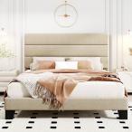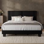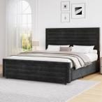 【並行輸入品】iPormis キングプラットフォームベッドフレーム 布張りのヘッドボード&厚みのある脚 マットレスファンデーション 頑丈な木製ス