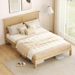 【並行輸入品】KOMFOTT (コムフォット) クイーンサイズ ウッドプラットフォーム ベッドフレーム ラタンヘッドボード付き ボーホーラバーウ