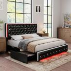 【並行輸入品】Torana King LEDベッドフレーム 引き出し2個付き PUレザープラットフォームベッド ダイヤモンドタフテッドヘッドボー