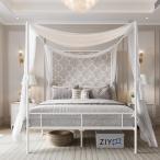 【並行輸入品】PAUKIN ホワイトメタルキャノピーベッドフレーム クイーン/マットレスファンデーション スチールスラットサポート/ボックススプ