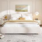【並行輸入品】クイーンサイズ Boucle 布張りプラットフォームベッド 取り外し可能な枕2個とヘッドボード付き 寝室用 キングサイズ 布張りベ