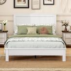 【並行輸入品】GOFLAME フルサイズ木製ベッドフレーム ミッドセンチュリー モダン プラットフォームベッド ヘッドボード付き 無垢材の脚 マ
