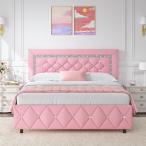 【並行輸入品】フルベッドフレーム 人工皮革プラットフォームベッド 布張りダイヤモンドヘッドボード付き マットレスファンデーション 強力な木製すの