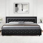 【並行輸入品】クイーンベッドフレーム ダイヤモンドタフテッドヘッドボード付き フェイクレザー布張りベッド 木製スラットサポート付き ボックススプ